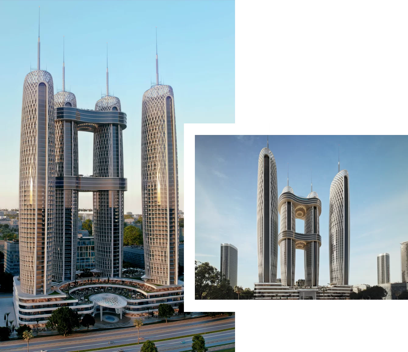 One non-repeating design is 𝟒 towers and a design of the highest quality conforming to all international specifications.